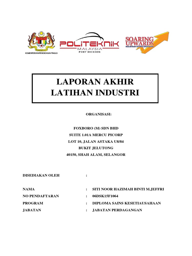 Contoh laporan akhir latihan industri politeknik merlimau melaka dari jabatan perhotelan dan pelancongan hotel catering contoh laporan akhir latihan. LAPORAN LATIHAN INDUSTRI Jabatan Pendidikan Politeknik dan Kolej Komuniti Kementerian Pendidikan Malaysia Edisi 2019. Contoh buku laporan latihan industri politeknik jabatan perdagangan laporan 7 cute766.